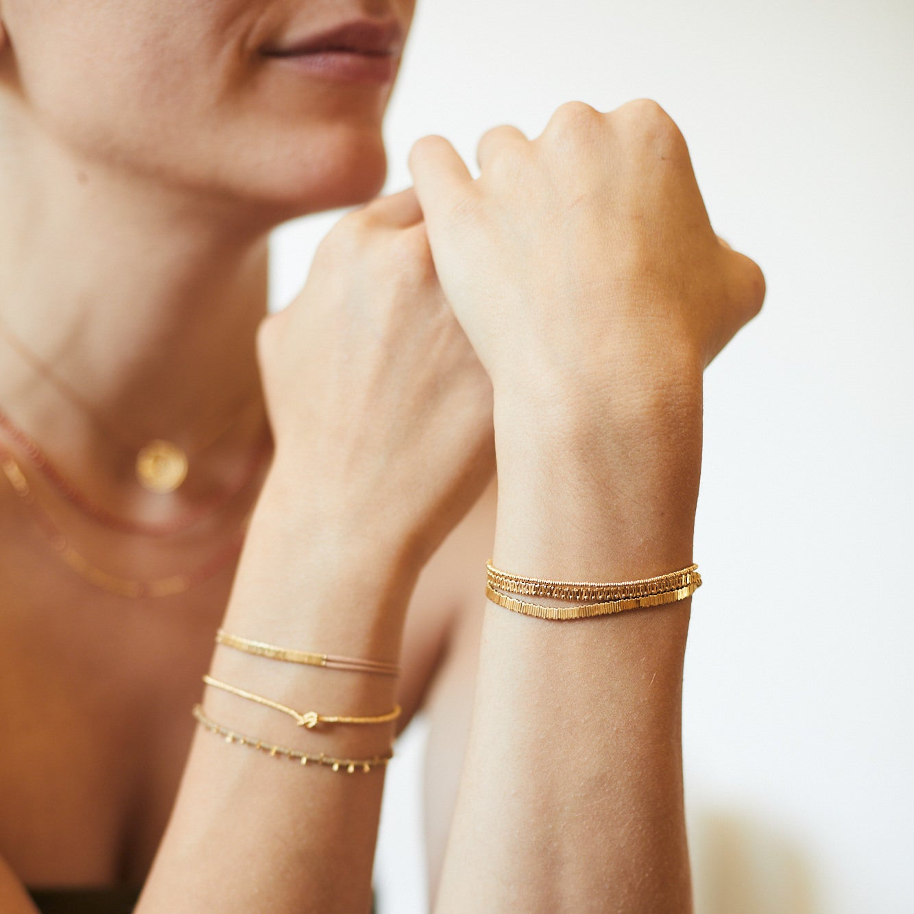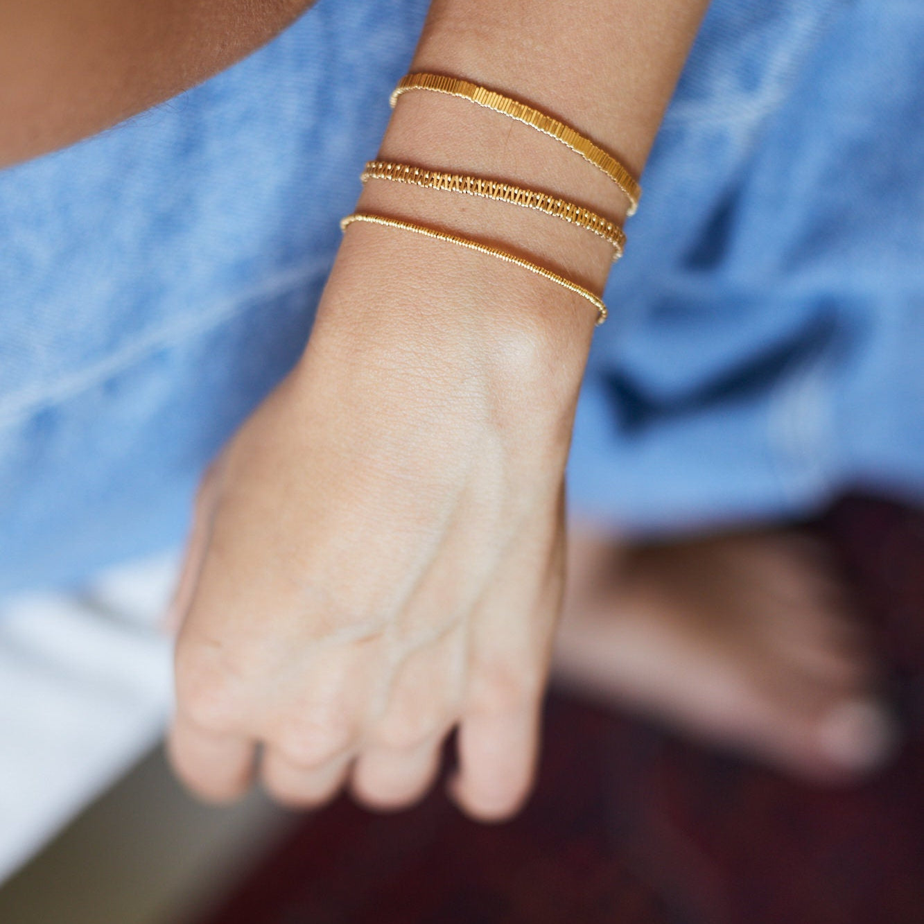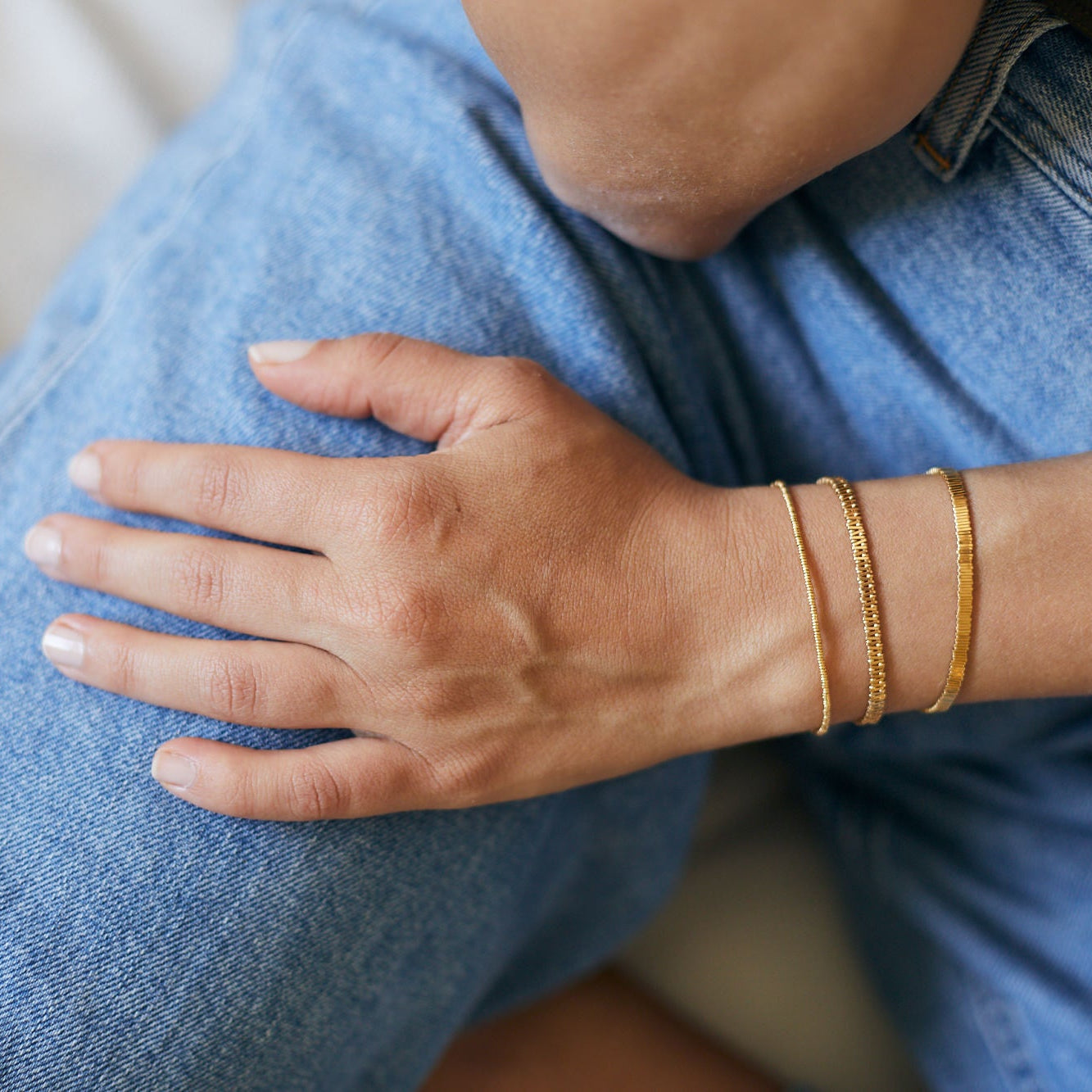 סט שלושה צמידים עשויים רק מהחוליות שלנו. לאוהבות הזהב