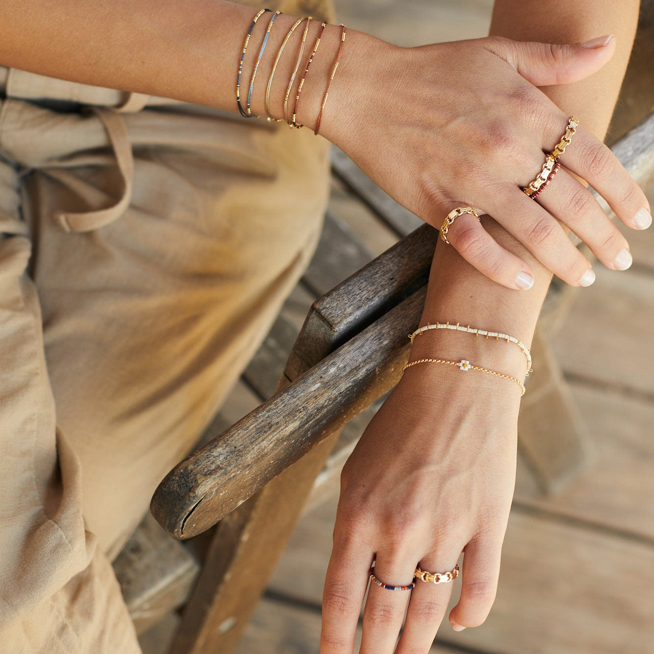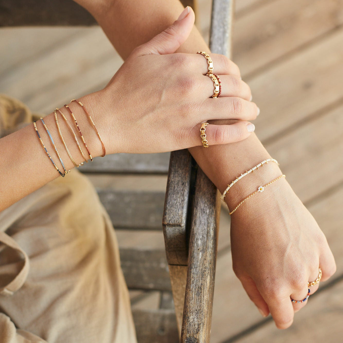 הפריטים שלנו עשויים מחומרים איכותיים שנבחרים בקפידה וממשיכים להשתפר לאורך השנים. חרוזי מיוקי מיפן - חרוזי זכוכית מובחרים, גולדפילד - שכבה של זהב שמולחמת בחום ולחץ למתכת, כסף 925 ובקרוב מאוד גם זהב 14k.