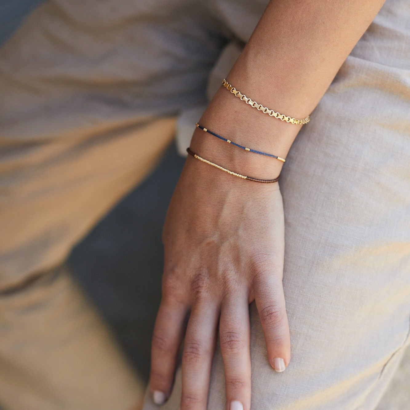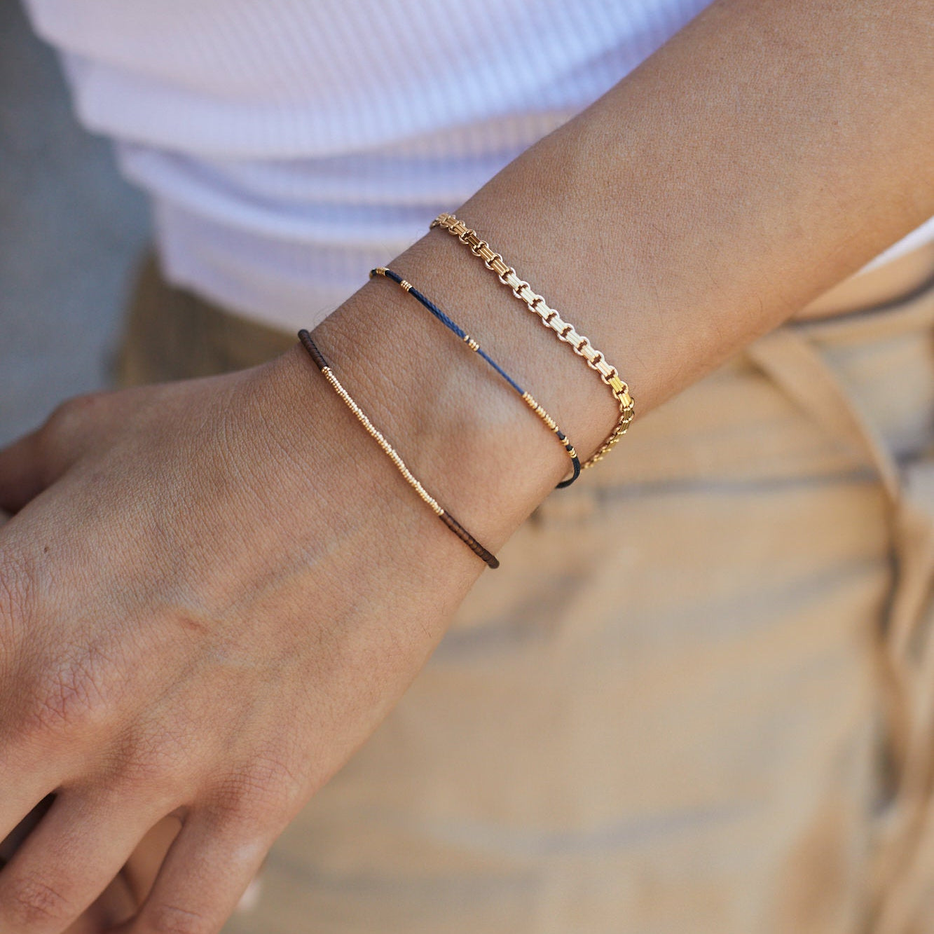 בסט - צמיד חוליות לולאה, צמיד מושלם חוט כחול כהה, צמיד מושלם חום