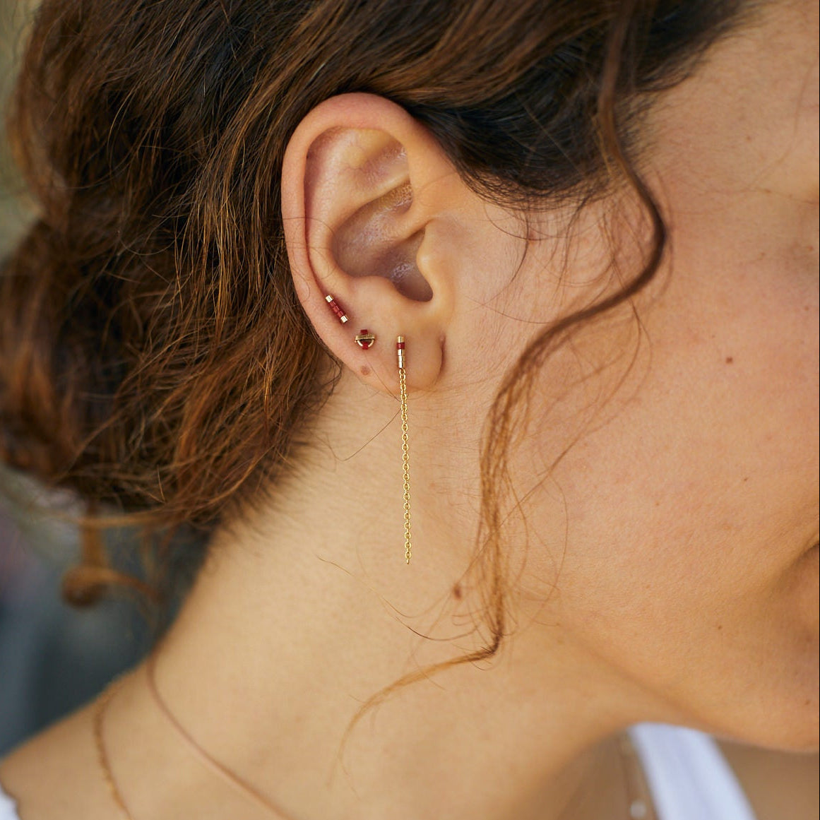עגיל ארוך וקלאסי עם אלמנט עשוי בעבודת יד, פיתוח חדש של הסטודיו.