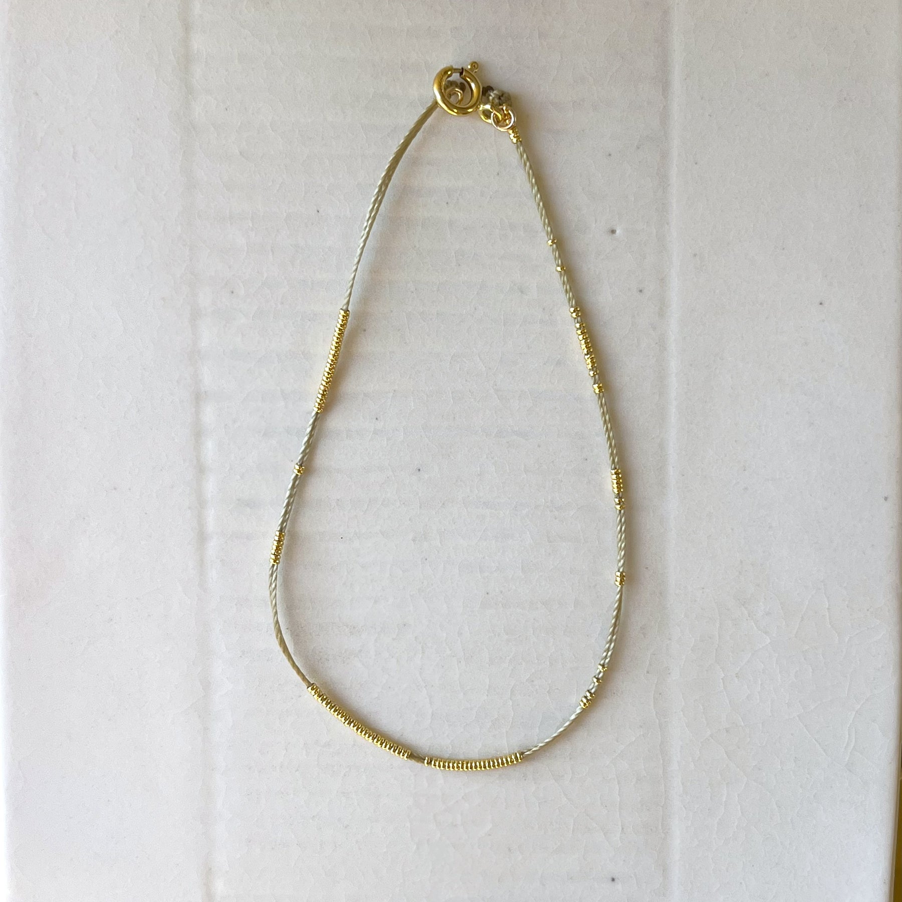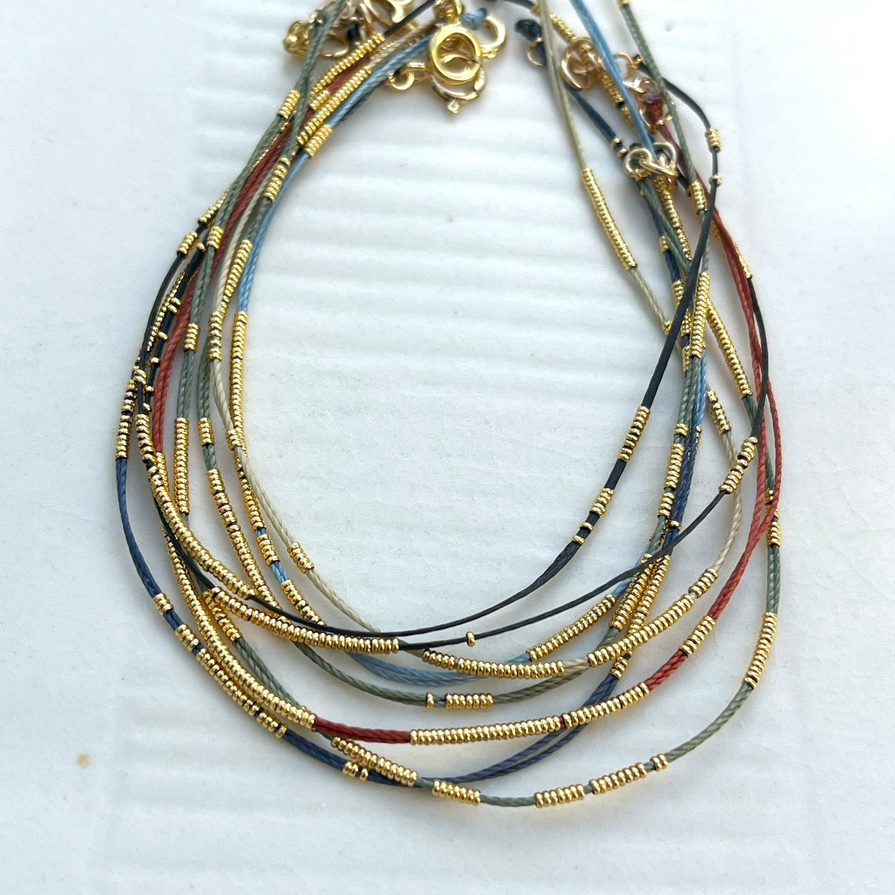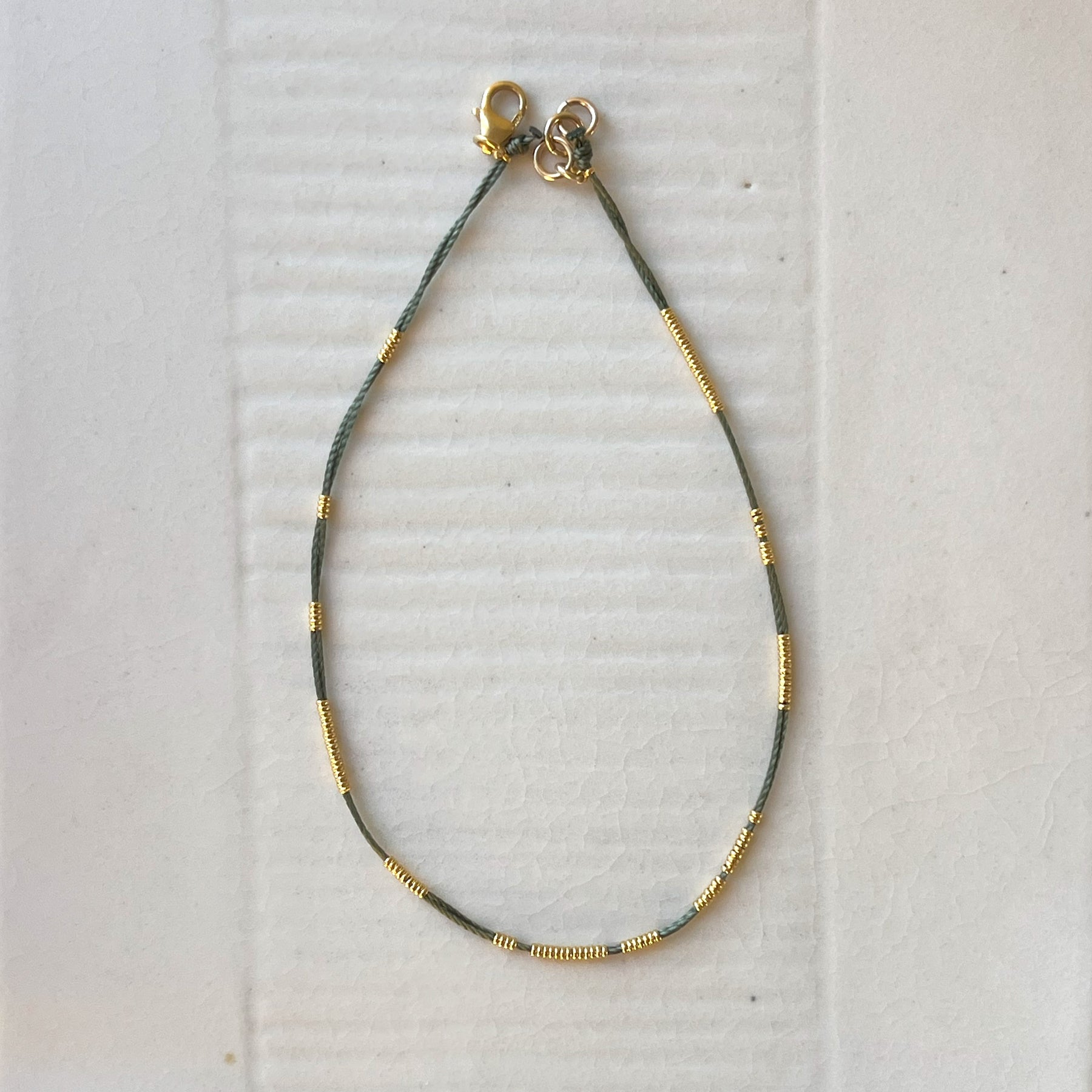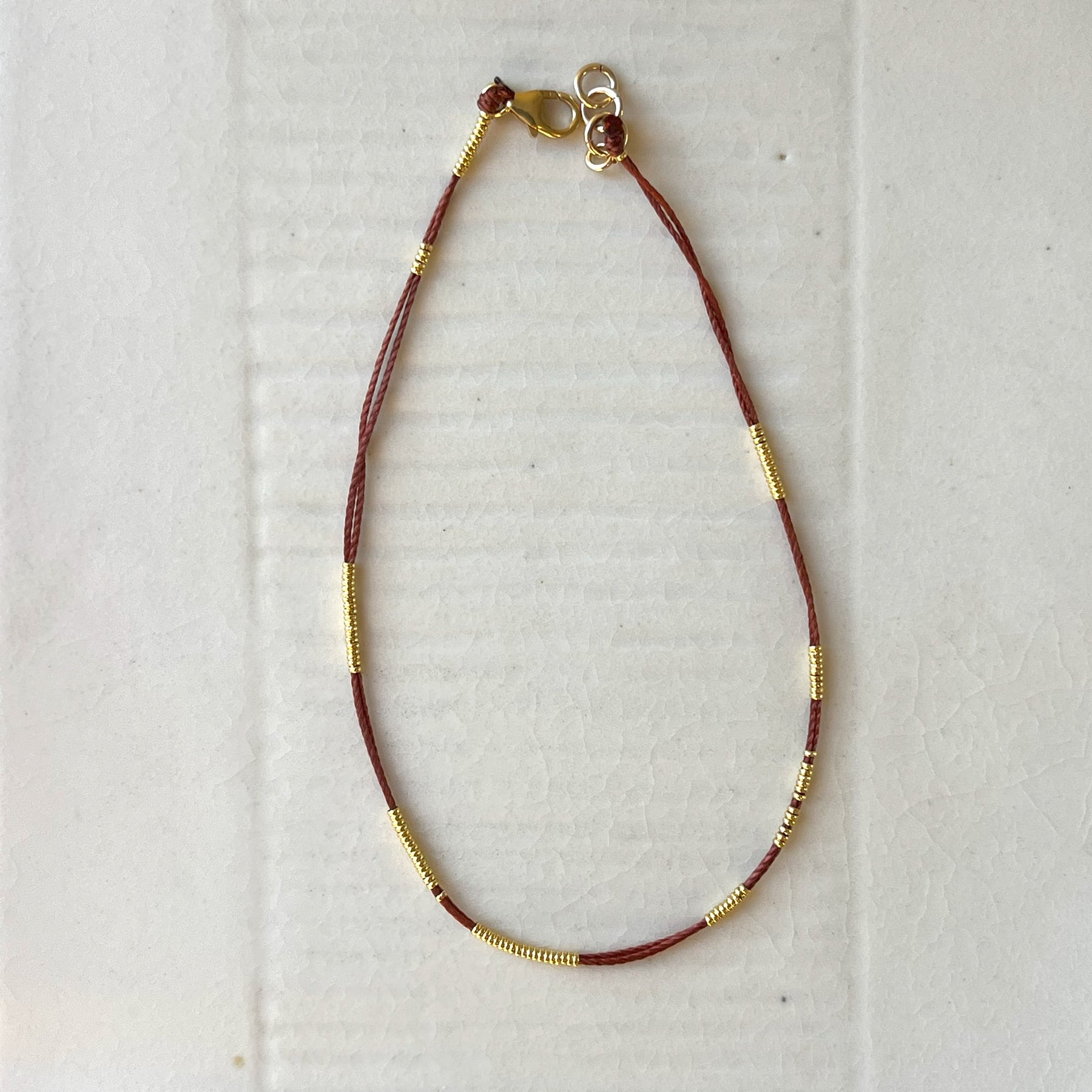 צמיד רגל חוט של ביז'ו עדין אך מושך את העין. עשוי מחוט שעווה חזק ועמיד, מיוצר בעבודת יד ייחודית בסטודיו שלנו, מושלם לבד או בשילוב עם צמידים נוספים.