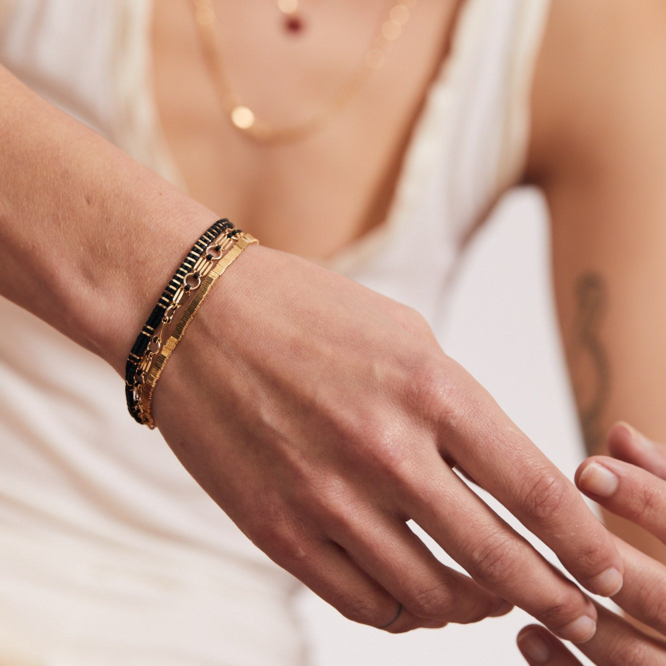 צמיד קלאסי של ביז׳ו עשוי חוליות קטנטנות, נעשה בעבודת יד ייחודית בסטודיו שלנו, מושלם לבד או כתוספת לצמידים נוספים